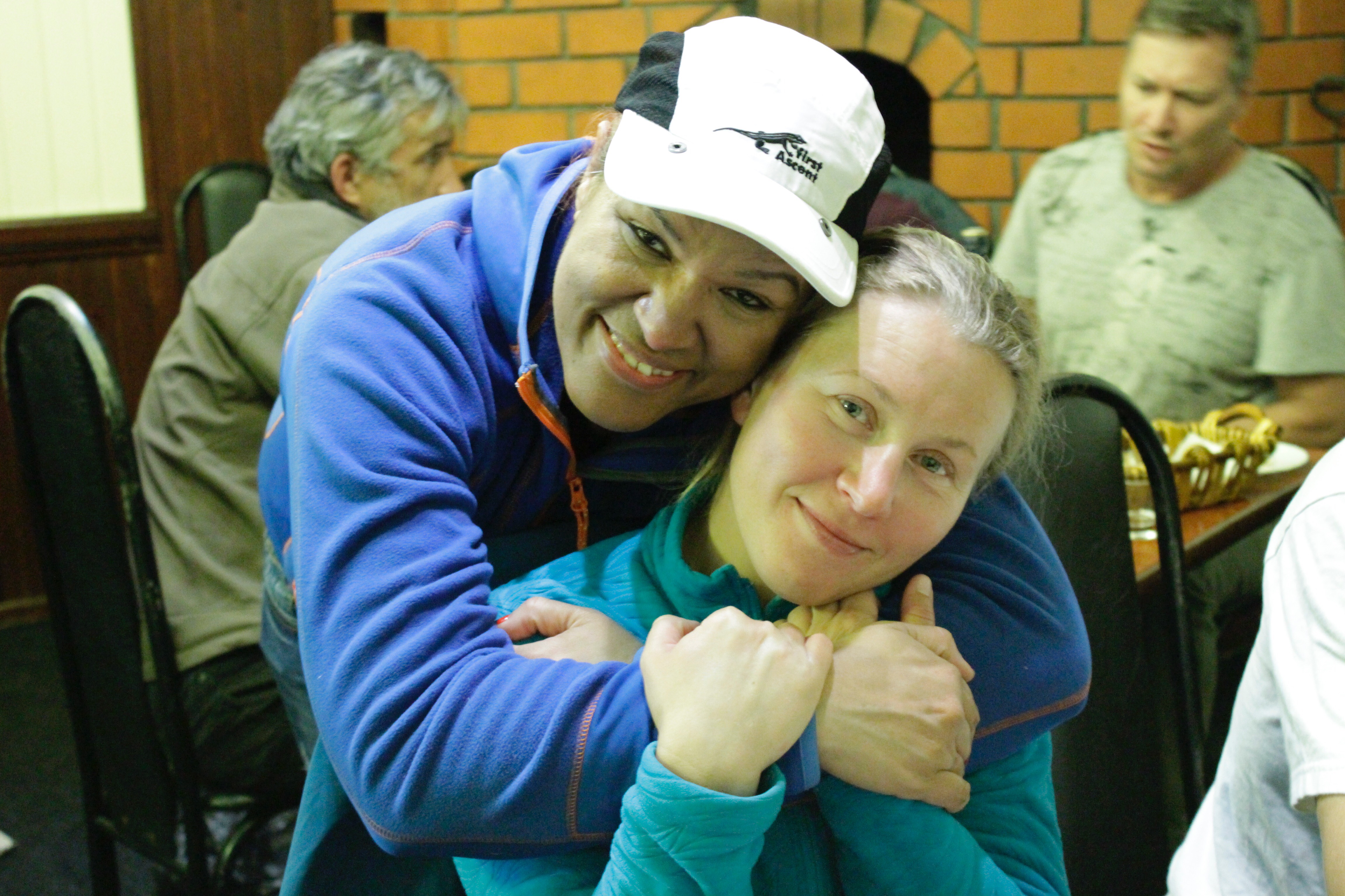 I struggle and make it to the marker completely out of energy. The wind is high and cold but the view is spectacular. The 3 Amigos are strong and ascend much quicker than me. Naz has come to Elbrus with an injured knee and it is starting to impact her progress and she trails me. We all get to the marker, take a few pictures and return to base camp. The guides use these acclimatisation hikes to assess the capability of each climber. People respond very differently to altitude and have different walking styles, some of which are not elegant but get the job done and others which are both elegant and efficient. These have a dramatic impact on ones speed and efficiency in climbing. So as it stood, the 3 Amigos from Cape Town were by far the strongest, then me, then Naz.